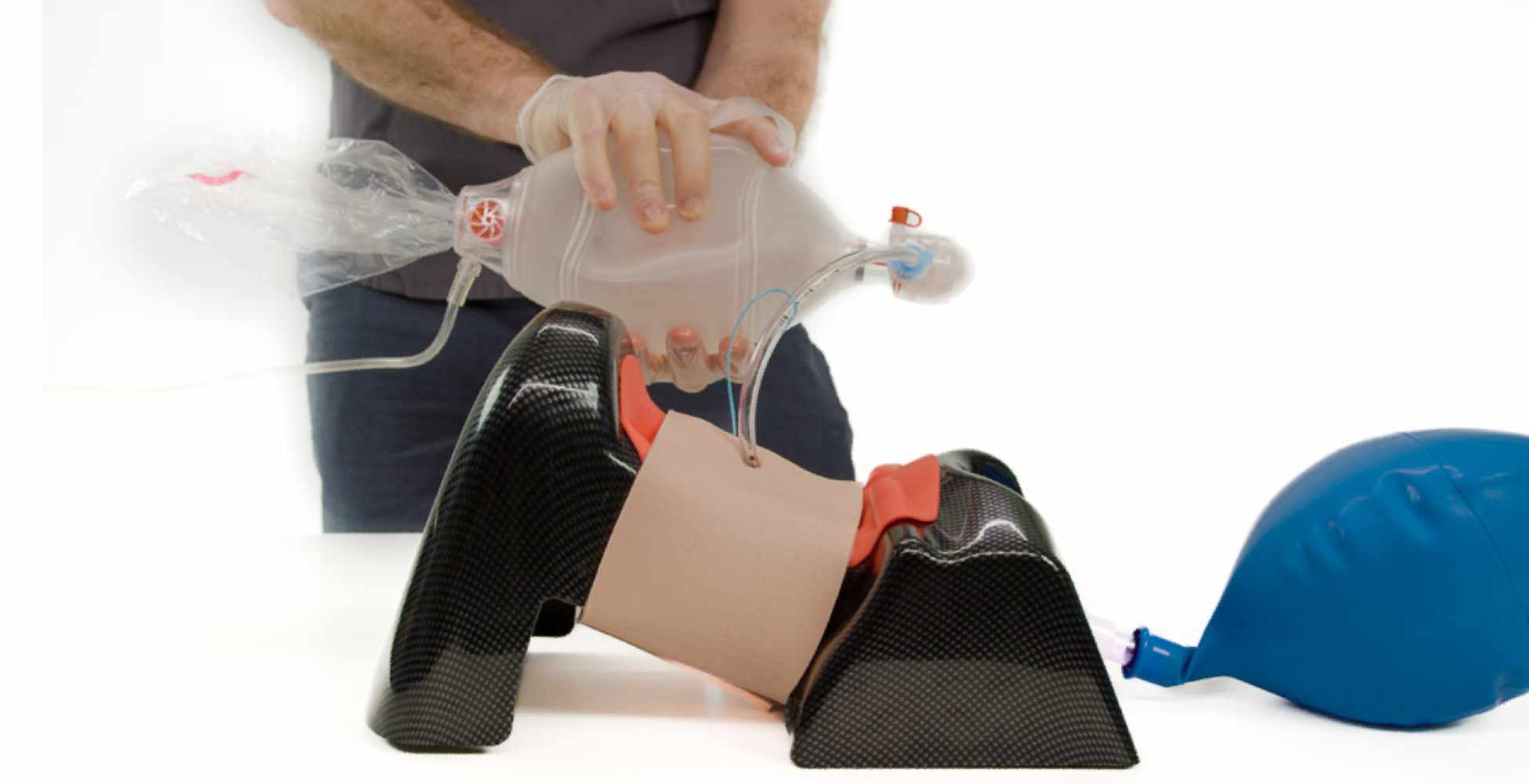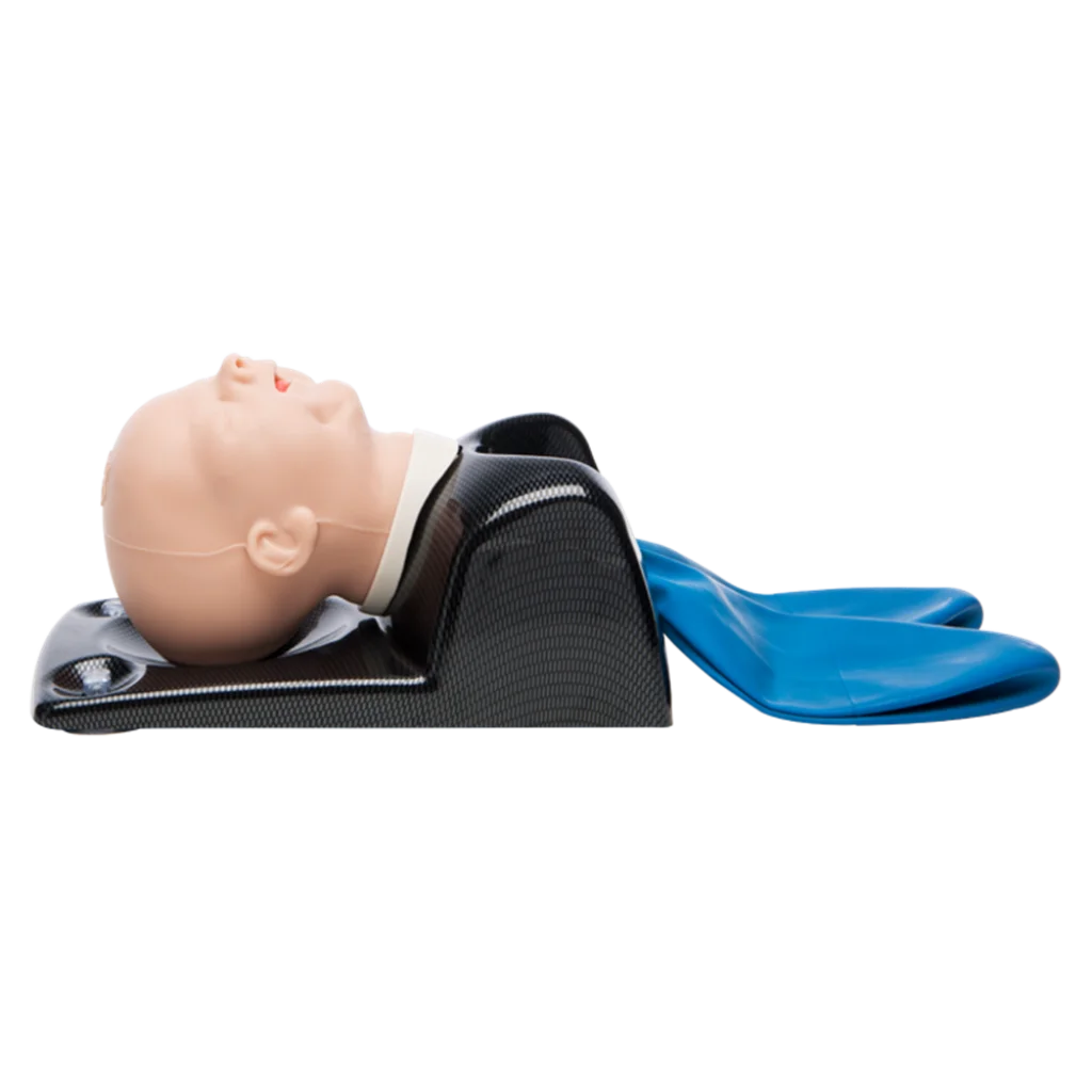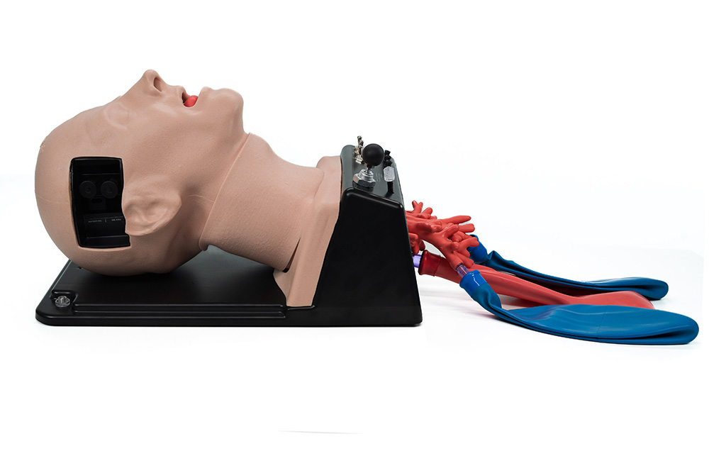 Simulador de vía aérea altamente realista con anatomía interna precisa. Permite intubación oral/nasal, inserción de dispositivos supraglóticos, cricotiroidotomía y ventilación pulmonar. Compatible con múltiples dispositivos.